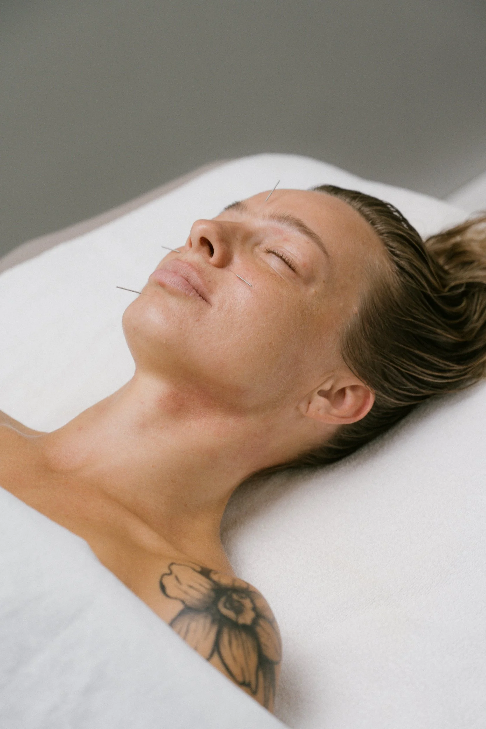 Precise facial + body acupuncture (fine needles placed intradermally and deeper where appropriate) to balance muscle tone and support Qi flow.