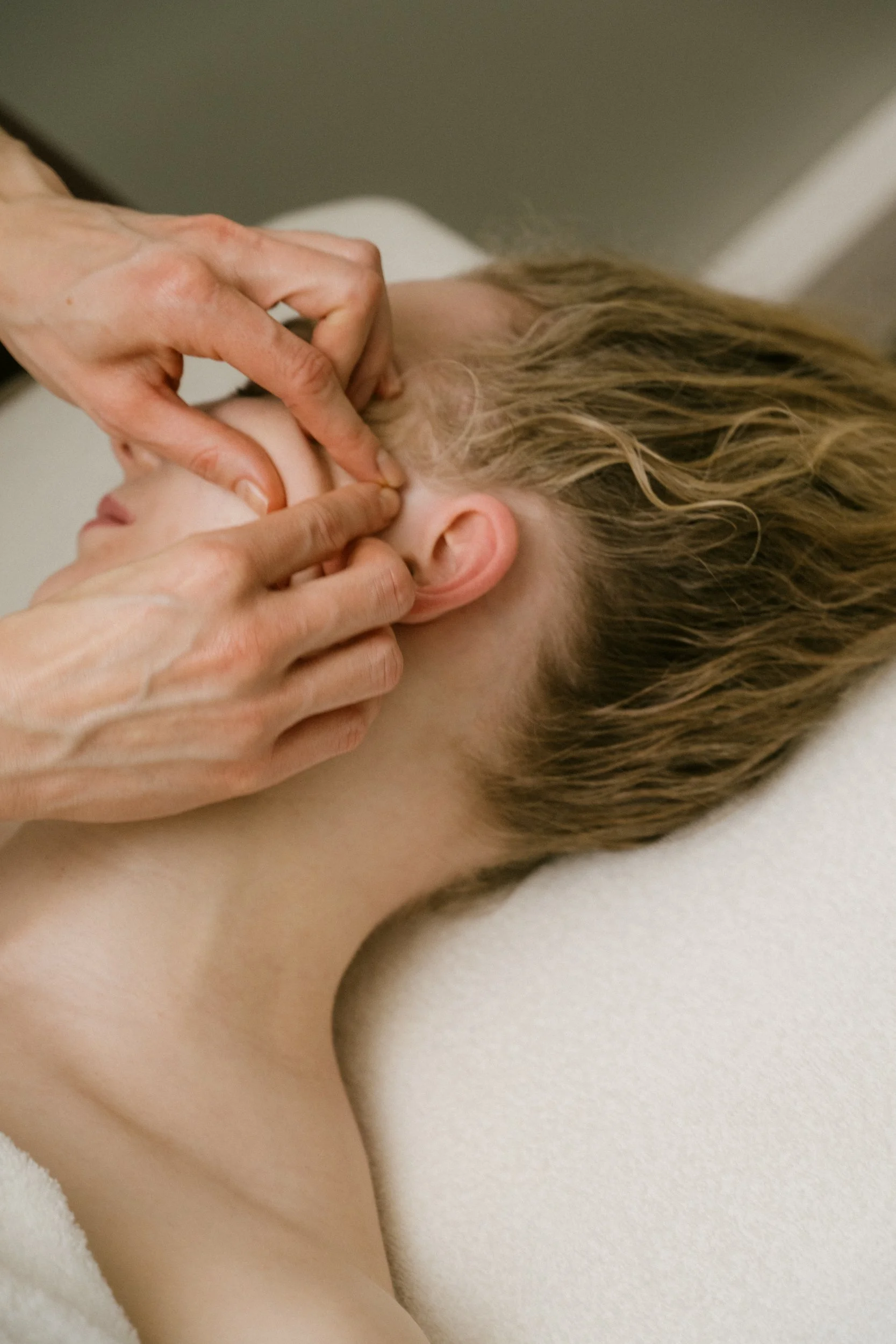 We begin with deep release of the neck, décolletage and scalp to soften the whole system.